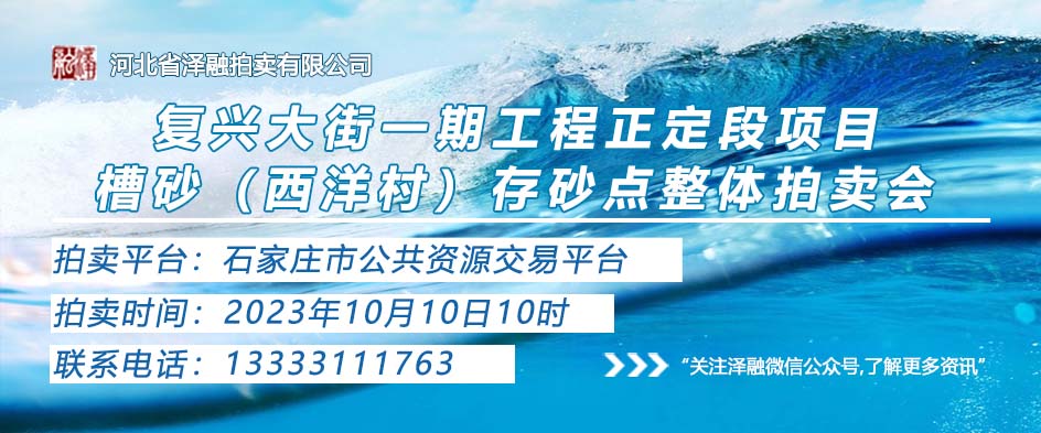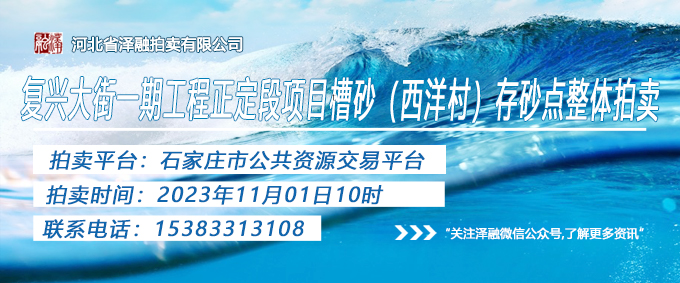 - [拍賣公告]復(fù)興大街一期工程正定段項(xiàng)目槽砂(西洋村)存砂點(diǎn)整體三次拍賣20231010