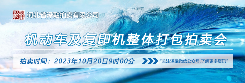 - 拍賣公告受委托,我公司定于2023年10月20日9:00在中拍平臺(tái)(https://paimai.caa123.org.cn/)公開拍賣“機(jī)動(dòng)車一輛及復(fù)印機(jī)一臺(tái)”(整體打包拍賣,拍賣標(biāo)的的質(zhì)量、型號(hào)、規(guī)格等情況以實(shí)際現(xiàn)狀為準(zhǔn),不接受現(xiàn)場(chǎng)競拍)。2023年10月18、19日在標(biāo)的物所在地預(yù)展?!?/dd>