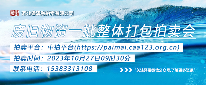 - 拍賣公告受委托,我公司定于2023年10月27日9:30在中拍平臺(tái)(https://paimai.caa123.org.cn)對(duì)“廢舊物資一批”整體打包拍賣,拍賣標(biāo)的的具體名稱、數(shù)量、質(zhì)量、型號(hào)、規(guī)格、配件等情況以移交時(shí)的實(shí)際現(xiàn)狀為準(zhǔn),不接受現(xiàn)場(chǎng)競拍。競買人資格要求:1.中華人民共和…