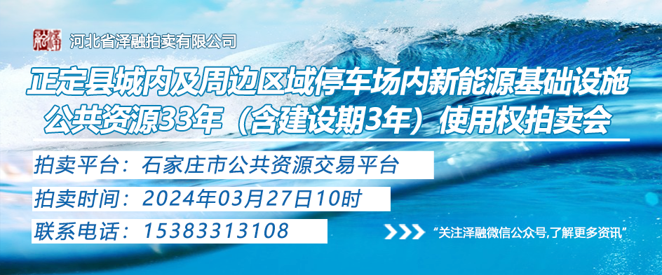 - [拍賣公告]正定縣城內(nèi)及周邊區(qū)域停車場(chǎng)內(nèi)新能源基礎(chǔ)設(shè)施公共資源33年(含建設(shè)期3年)使用權(quán)拍賣公…